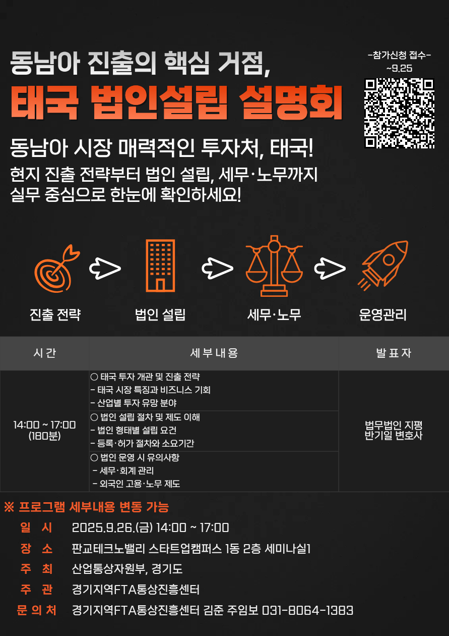 ‒ | [경기지역FTA통상진흥센터] 태국 법인 설립 설명회 개최 안내 |