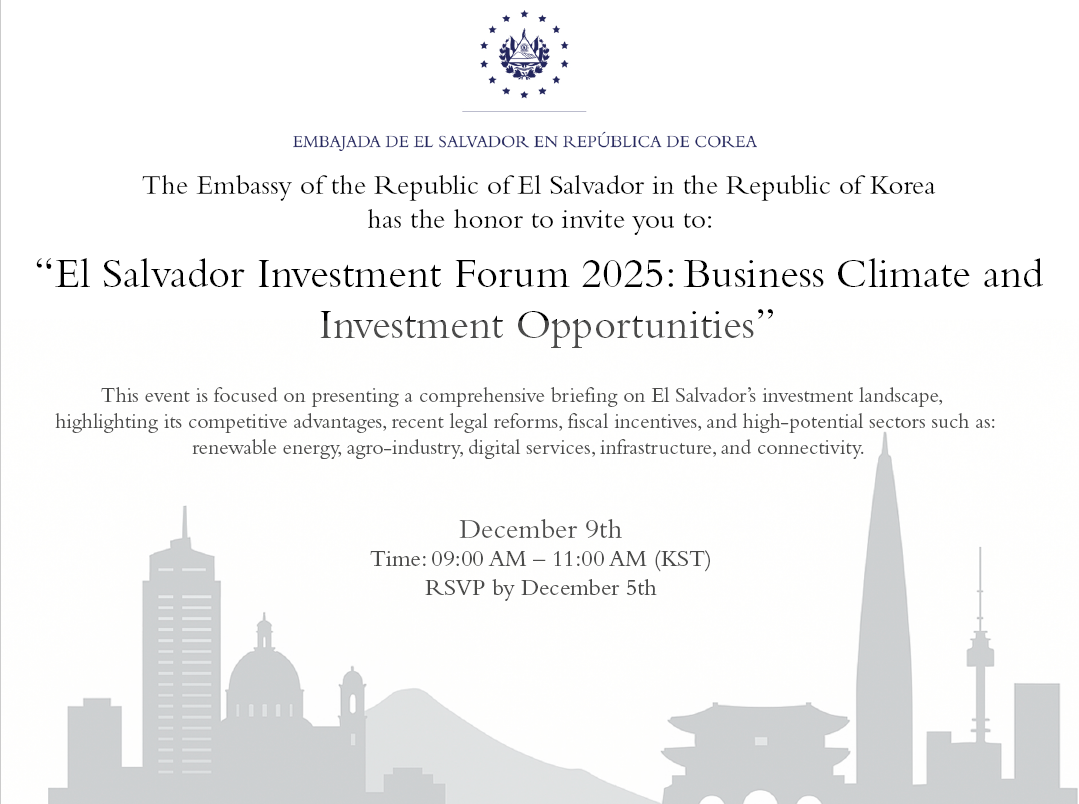 - 행사명 : El Salvador Investment Forum 2025: Business Climate and Investment Opportunities