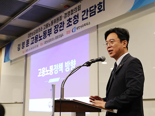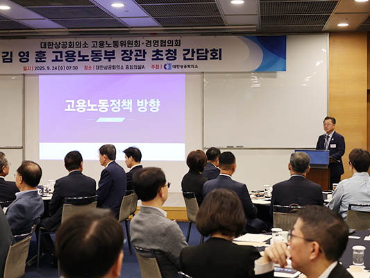 대한상공회의소(회장 최태원)는 24일 상의회관에서 김영훈 고용노동부 장관을 초청해 ‘새정부 주요 고용노동정책 방향’을 주제로 ‘고용노동위원회’를 개최했다.
