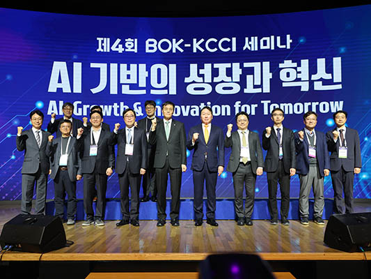 대한상공회의소(회장 최태원)는 5일 대한상의 국제회의장에서 ‘AI 기반의 성장과 혁신’을 주제로 제4회 BOK-KCCI 세미나를 한국은행과 공동 개최했다. 이번 세미나는 급변하는 글로벌 환경 속에서 AI 기반의 산업 혁신과 기업 성장 생태계를 구축하기 위한 전략을 모색하는 자리로 마련됐다. 대한상의와 한국은행은 우리 경제의 지속가능한 성장 전략에 대한 논의를 확대하기 위해 2023년부터 정기적으로 공동 세미나를 열고 있으며, 이번이 네 번째다.