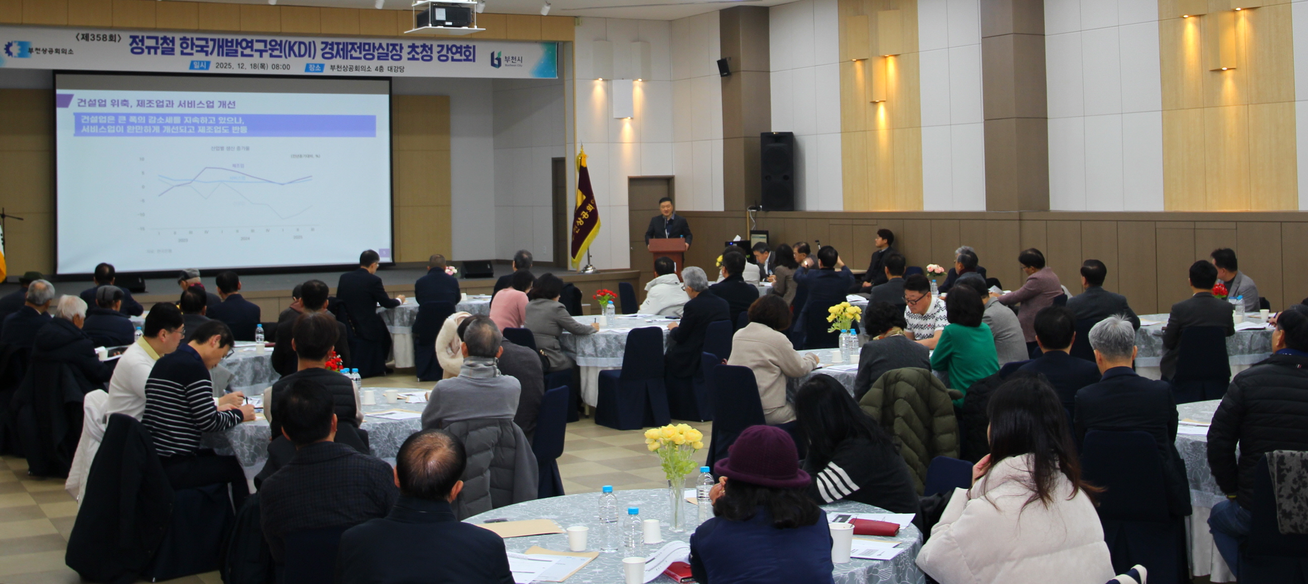「경기 회복 국면, 관세 부담과 저성장 위험에 대응하자」 - “2026년 경제전망 ” 주제로 - - 『정규철 한국개발연구원(KDI) 경제전망실장, 제358회 부천상공회의소 강연회』에 강사로 나서