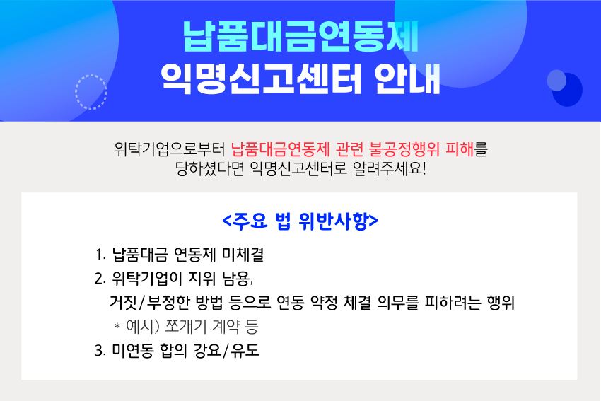 *납품대금연동제 익명신고센터: https://www.smes.go.kr/poll/policy/policyAnonymInfo.do |
