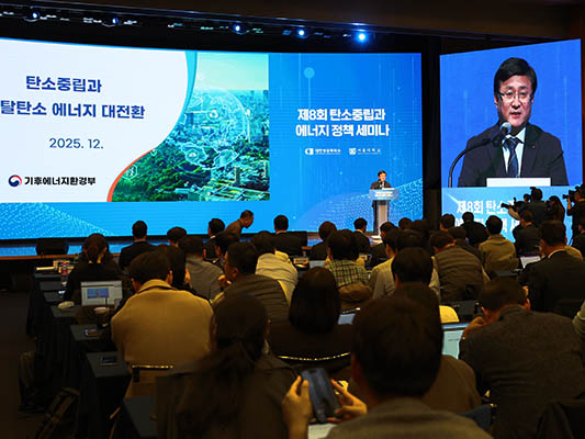 국가 탄소중립 전략, ‘규제에서 기술개발 지원’으로 패러다임 전환해야 - 대한상의, 10일 “새정부의 탄소중립·에너지 정책 방향과 과제” 주제로 제8회 탄소중립과 에너지 정책 세미나 개최 - 최태원 대한상의 회장 개회사, 김성환 기후에너지환경부 장관 기조강연... “탄소중립, 막대한 신시장 창출할 것” - 전문가들, “규제 중심에서 혁신기술 개발 중심의 통합적 전략 필요” “기후테크 사업화 규제 풀어야”