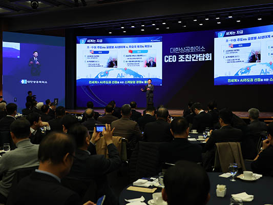 과기부총리, “AI 혁신으로 주력산업 경쟁력 끌어올릴 것” - 대한상의 주최 CEO 조찬간담회 개최... 최태원 회장 등 기업인 250여명 참석 - 배경훈 부총리, ‘대한민국 AI가 나아갈 길’ 발표... AI혁신생태계 구축과 全산업 AI대전환(AX) 가속화 강조 - 참석 기업, ▲AI 인프라 지원방안 ▲데이터 활용 및 규제 완화 ▲산업별 AI 확산 등 건의